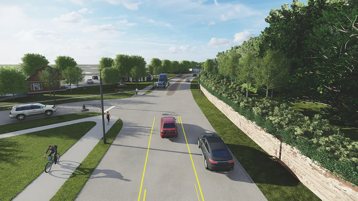 Phased construction of the new Bluff Boulevard will begin in the spring of 2025. The $17 million project – with the help of environmental graphics to create a brand for the corridor – will turn an outdated stretch of road into a scenic gateway to the Mississippi River town. Modeling the traffic patterns of the road for 20 years out will ensure that the “Drive to Prosperity” will continue operating smoothly and safely for years to come.