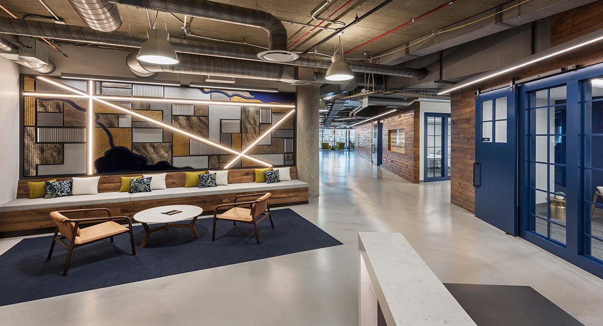 The Climate Corporation wanted its new space to visually represent the technology it provides to clients while offering an attractive setting that would appeal to existing and future employees.