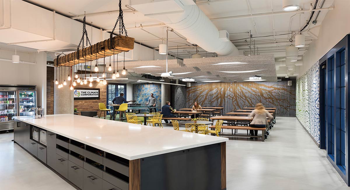 Leasing a floor in a different facility, The Climate Corporation wanted to create a work environment that employees would be proud to be part of.