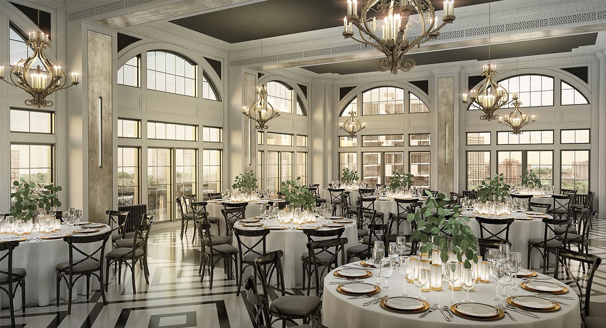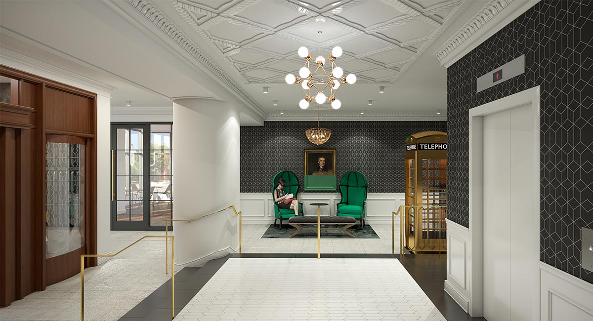 Pioneer Acquisitions, new owners of the 14-story Piccadilly Building, needed help visualizing what could be done with 8,000 square feet of amenity space as well as repurposing existing loading space into a private event lobby. All this while remaining true to the building’s heritage of ornamentation, but with a modern feel in the effort to restore the building’s glory and still provide desirable, high-end living spaces.