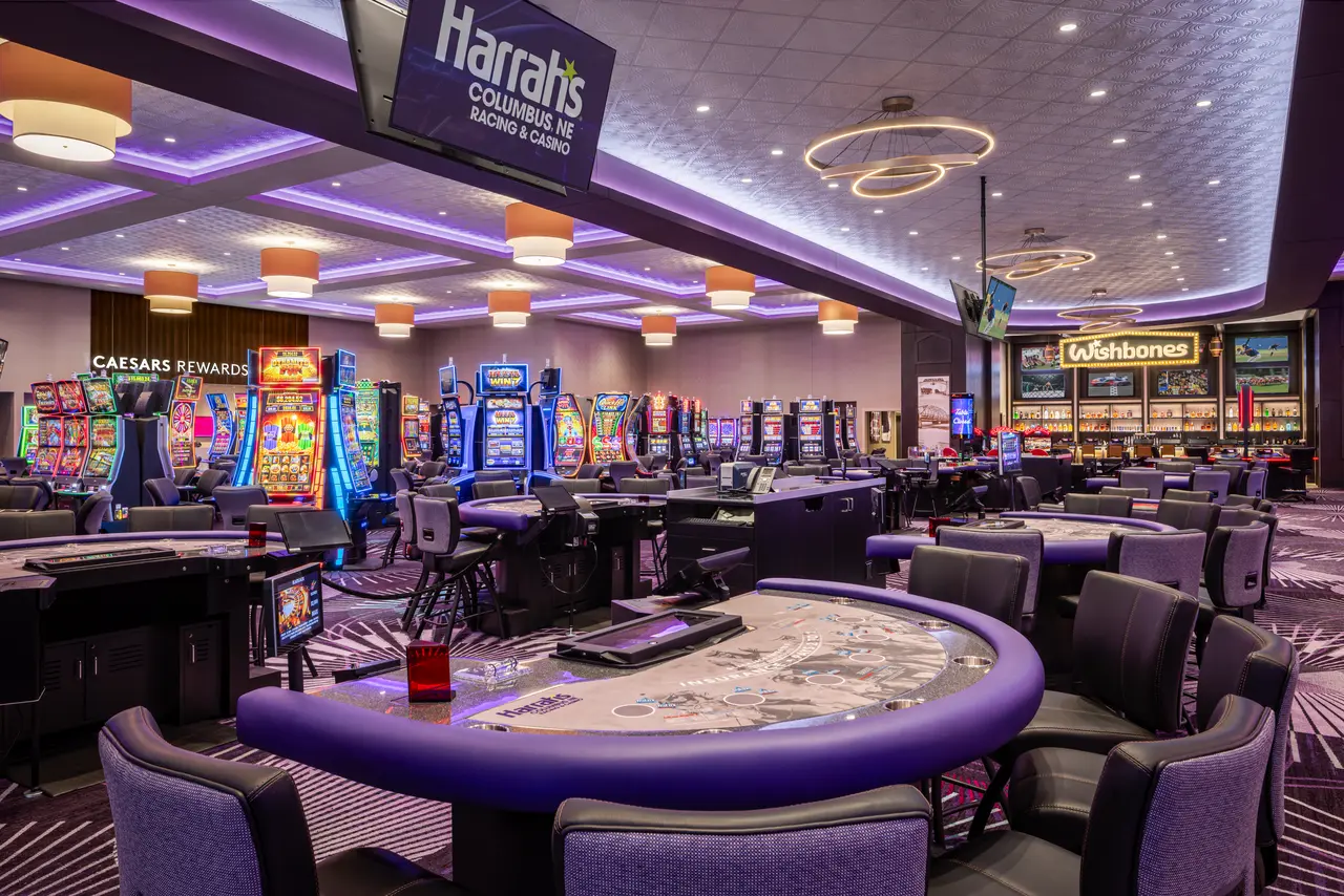 Harrah’s Columbus Racing & Casino located in Columbus, Neb. Montgomery Roth provided full architectural design services for Harrah’s Columbus, a new racing and gaming destination in Nebraska. The project includes a one-mile thoroughbred racetrack, a 28,000 square foot casino with slot machines, table games, and a Caesars Sportsbook, as well as multiple dining and entertainment venues. The scope also included guest amenities and integration with a dual-brand hotel connected through interior circulation. Master planning and design solutions were developed for public spaces, gaming areas, hospitality venues, and back-of-house functions to ensure both operational efficiency and a seamless guest experience. Finishes, lighting and furnishings were selected to reflect the Harrah’s brand identity while supporting the energy and excitement of the venue. The result is a cohesive environment that combines racing, gaming and hospitality into a premier entertainment destination for the region. (Photo Courtesy of Caesars Entertainment)