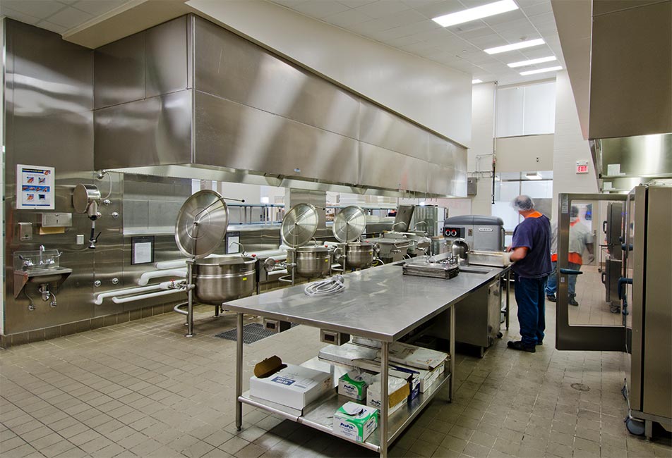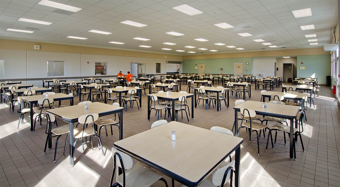 The North Central Correctional Facility’s Dietary Center was too small to adequately serve its current offender population. Equipment was extremely outdated, and deteriorated finishes were causing potential health risks in the food preparation and serving areas. The North Central Correctional Facility was hoping to renovate the existing space and add more square footage to expand seating capacity in the dining area. It was crucial, however, that the dietary services remain operational at all times.
