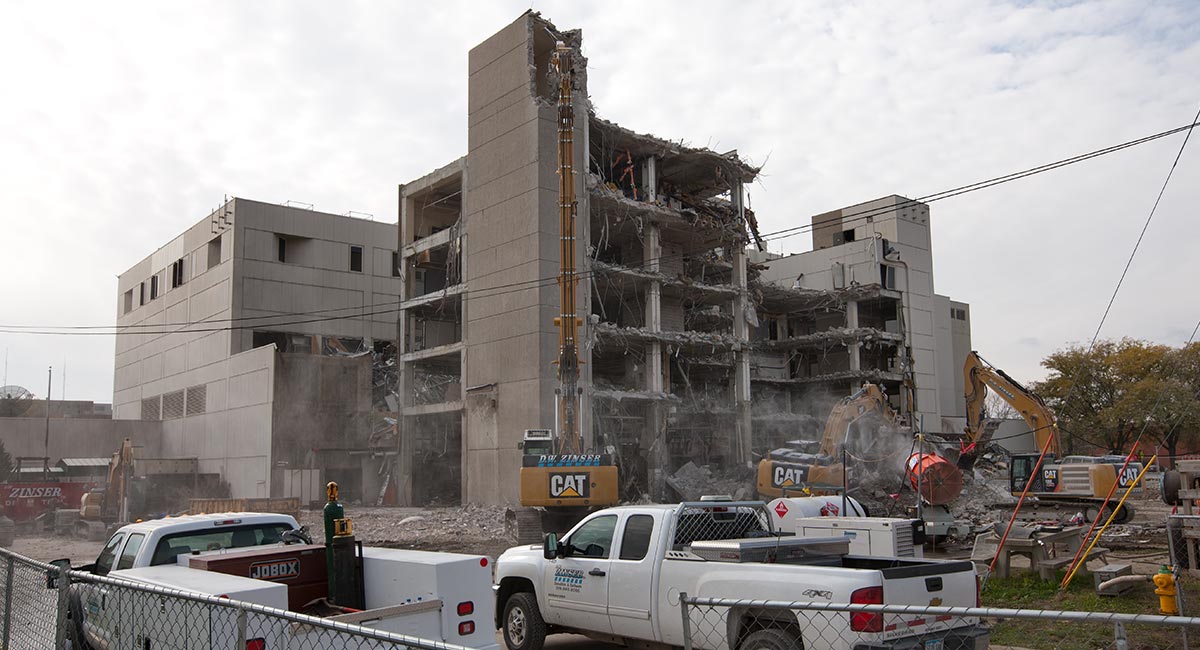Shive-Hattery was selected by the Iowa Department of Administrative services for the complete demolition, utility disconnection, and site restoration of the 300,000-square-foot Iowa Building.