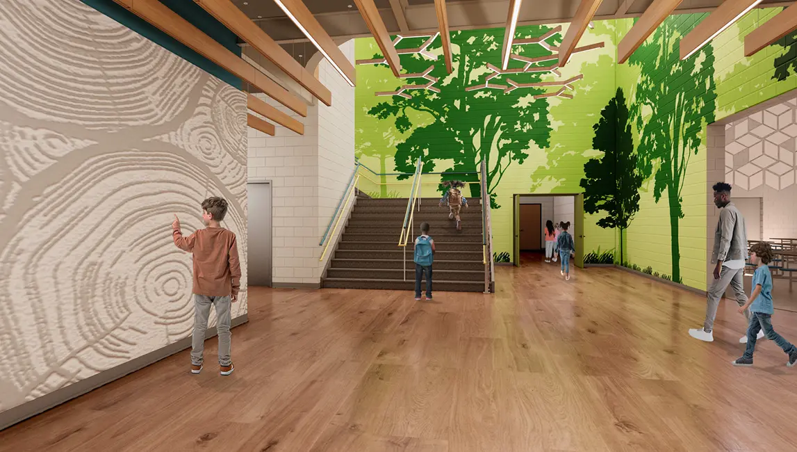 The new Van Buren Elementary is designed to support a growing number of students, including a large population of English Language Learners. By adding needed classroom space, creating dedicated areas for language instruction, and addressing long-standing accessibility issues, the district ensures that every student can fully participate in their education with dignity. Installing a new elevator and ADA-compliant restrooms, including facilities specifically designed for mobile-dependent students, on both levels, will ensure that all areas of the school are accessible. At the same time, clearer circulation paths and wayfinding elements will improve safety and ease of movement throughout the building.