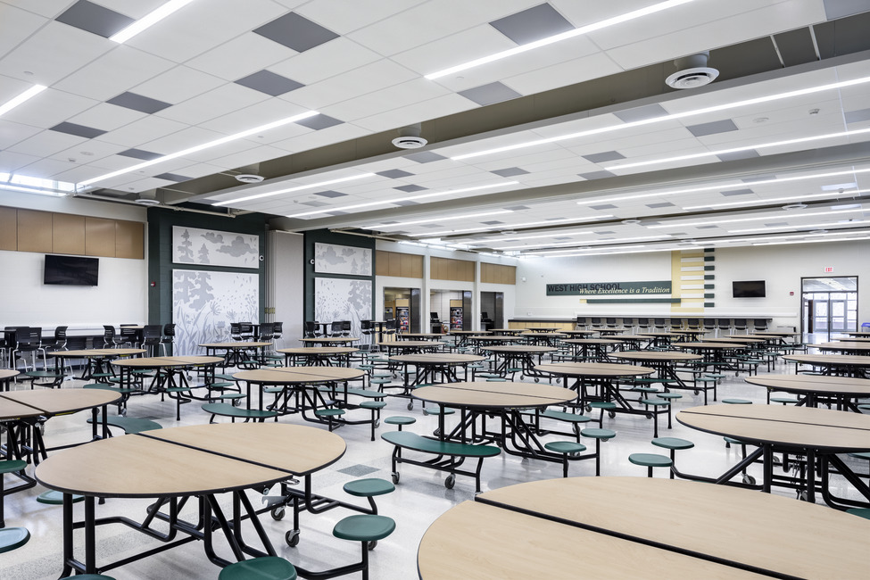 With a modernized and expanded kitchen/cafeteria, West High School is better equipped to handle high enrollment rates. Instead of spending lunch breaks in the line, students move through line faster and find a place to sit and eat inside the cafeteria.