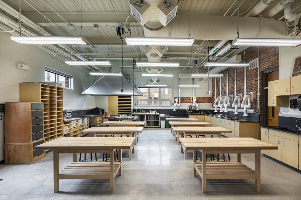A new loading dock gives custodial and building maintenance their own receiving area, as well as offers direct access to the kitchen. A redesigned staff lounge gives teachers access to staff-only restrooms, a lactation room, and an updated place to relax.
