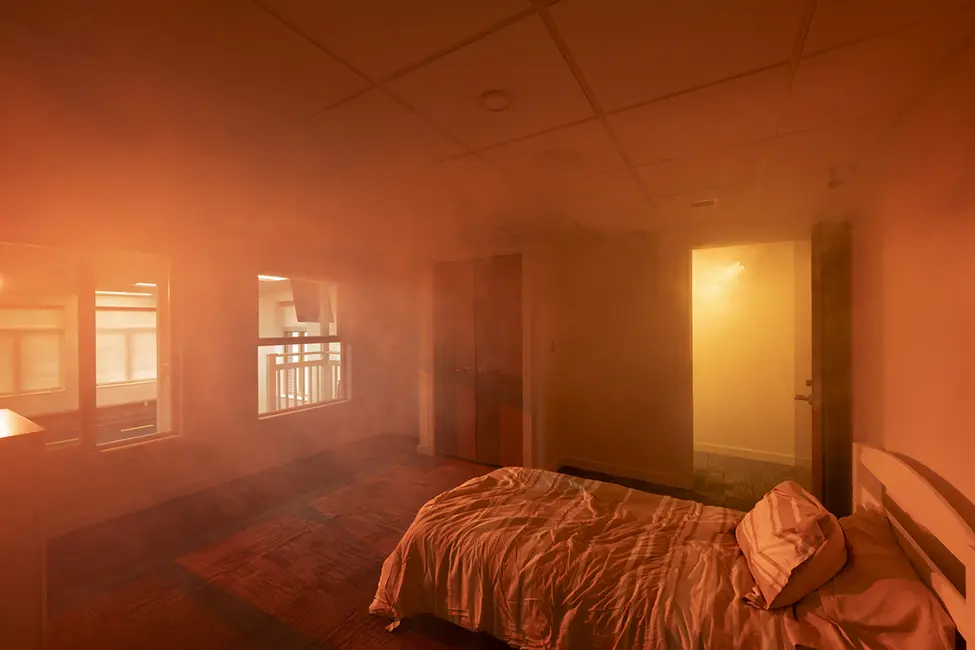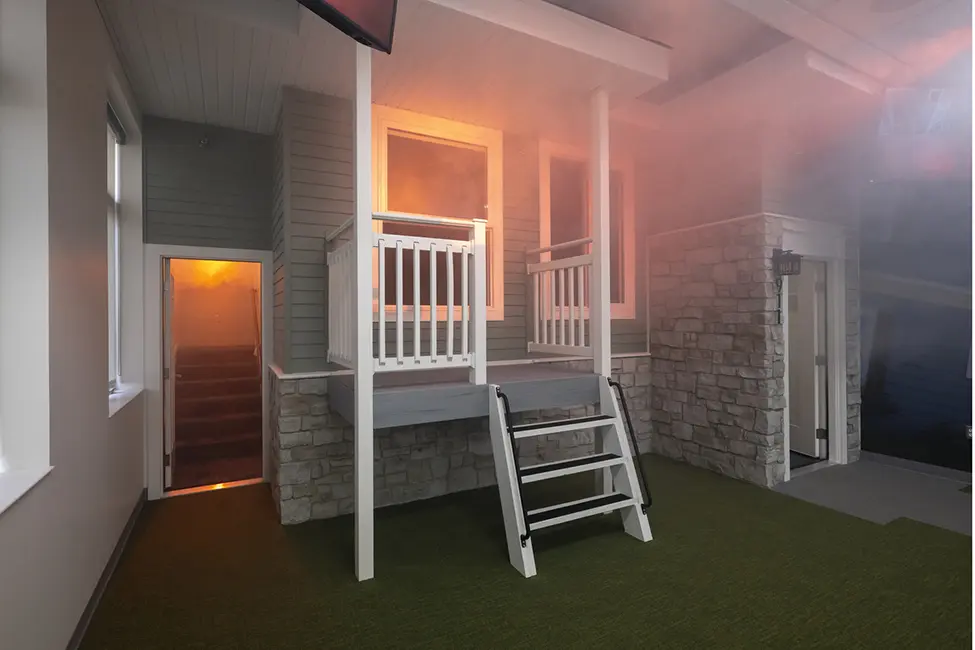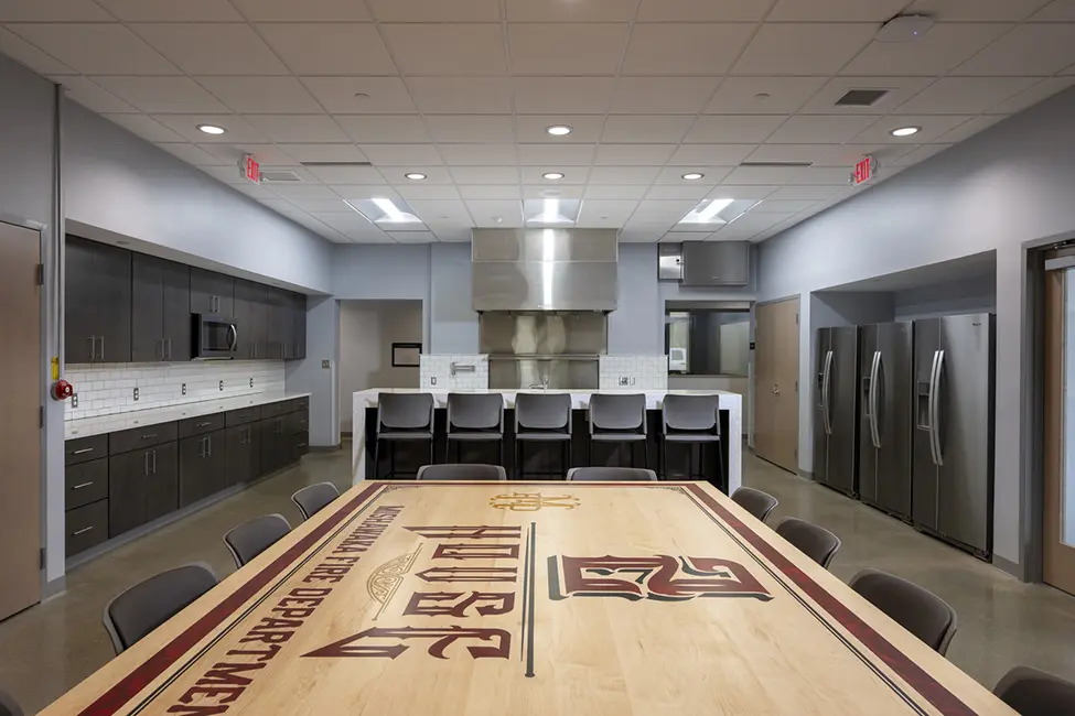 The new station features modern amenities, including fire administration offices, sleeping quarters, a training room, an apparatus bay, and typical fire station support spaces. Unique additions include a “Survive Alive” house for public education and a dedicated mechanical area with a storage and training mezzanine.