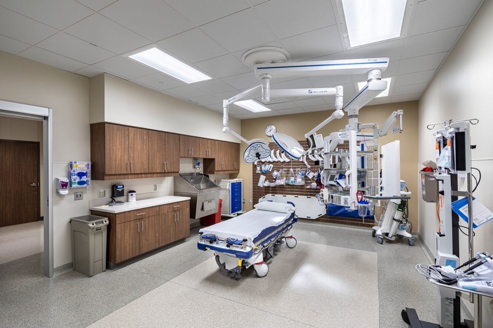 The one-story facility includes a full emergency department with 11 exam rooms, eight inpatient beds, and technology to support state-of-the-art imaging and diagnostic equipment, as well as telehealth services. The building was designed to offer patients easy access, and support clinical staff as they administer care quickly.