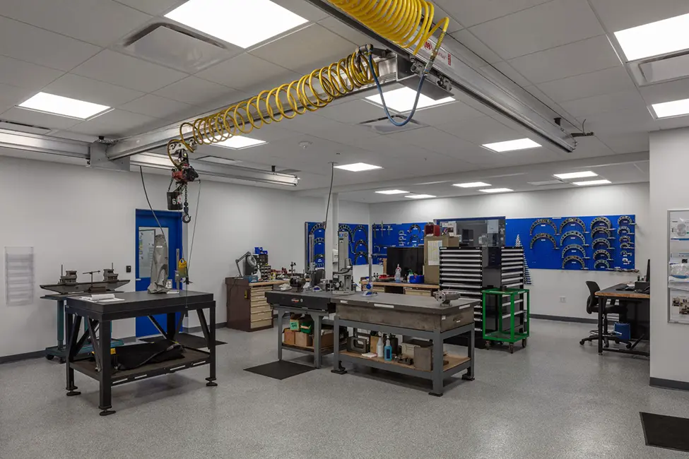 better flow. Assembly and warehouse space were also part of the new space. Attention was also paid to collaboration and social spaces like training rooms and break areas, which are important not only for wellbeing, but attraction and retention of employees.