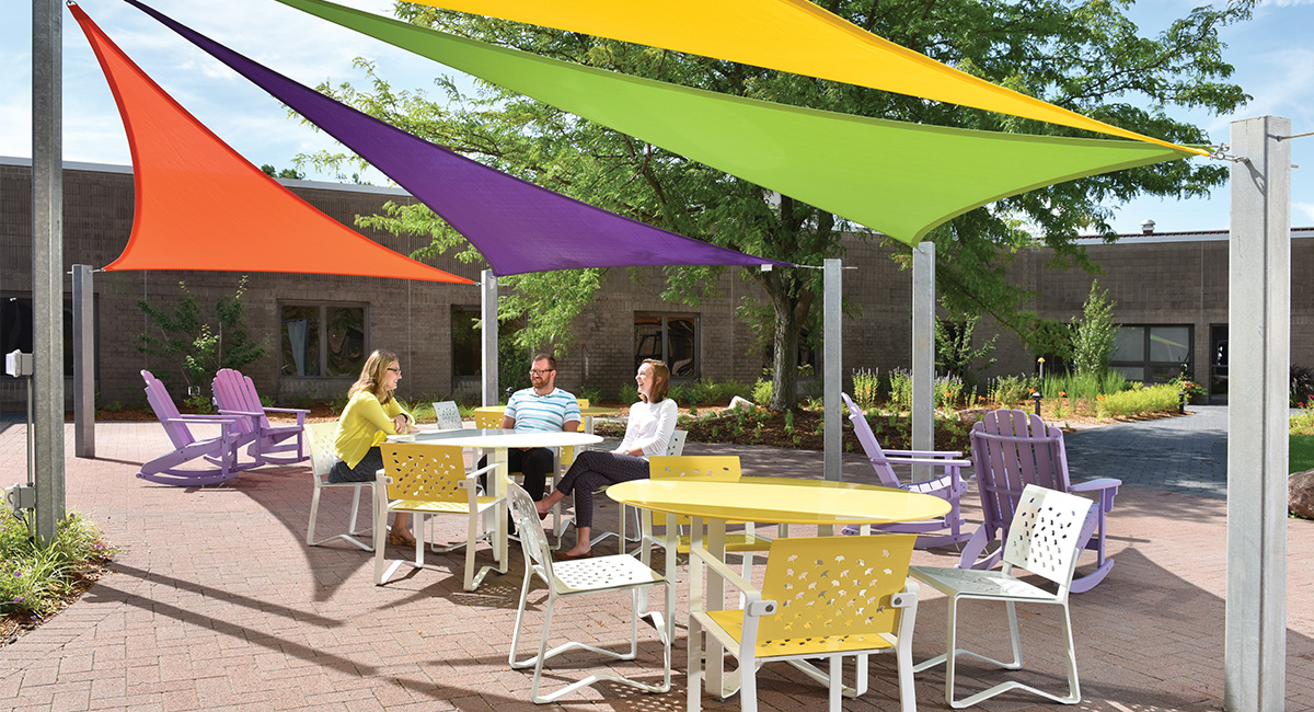 Outdoor spaces connect us to nature, improve our overall well-being and offer the opportunity for reflection and recreation. Listening to birds chirping, a bubbling water fountain or swaying ornamental grasses while viewing pops of colorful blooms provide relief from stress and symptoms.