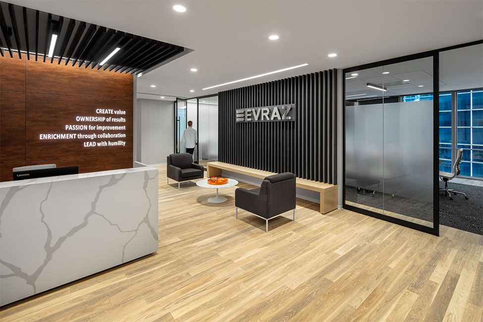 After relocating, EVRAZ has an office that reflects its core values and identity as a steel manufacturer while attracting new talent and retaining existing staff through new amenities, collaborative workspaces, and location. Situated closer to city conveniences and public transportation, the headquarters building is now more accessible and approachable.