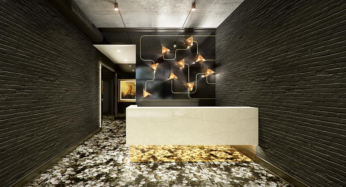 Pioneer Acquisitions, new owners of the 14-story Piccadilly Building, needed help visualizing what could be done with 8,000 square feet of amenity space as well as repurposing existing loading space into a private event lobby. All this while remaining true to the building’s heritage of ornamentation, but with a modern feel in the effort to restore the building’s glory and still provide desirable, high-end living spaces.