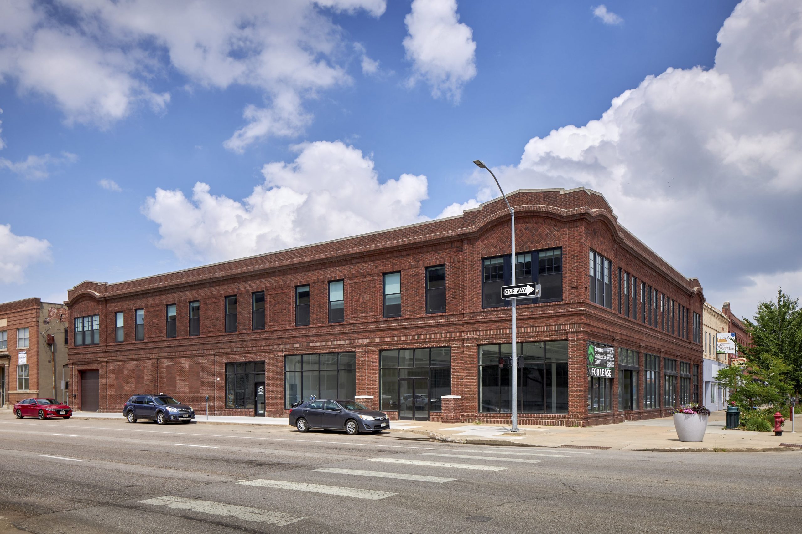 The Strode Building was completed in 1917 by noted Lincoln, Nebraska architects Fiske & Meginnis. The building served the auto industry along Lincoln’s Automobile Row throughout the 20th century, housing numerous distinct automotive names. Originally designed with automotive showrooms on the south side of the first floor, interior parking on the north side, and repair space and storage on the second floor. In 2018, when the current owners decided to redevelop the space, they knew they wanted to answer the demand for additional multi-family housing and commercial space in downtown Lincoln, utilize federal and state historic tax credit funding, and maintain the historical integrity of the building. Shive-Hattery’s design maintained the first floor’s bisection of 6,000 square feet of indoor parking but turned the showroom space into 5,100 square feet of commercial space equipped to accept a grease hood shaft should a commercial tenant need it. The second level was configured into 13 residential apartments ranging from studios, one-bedroom, and two-bedroom units. In order to achieve the client's desired number of units, a light well was added to the roof to provide daylight to the internal apartments. Some of the challenges that came with the development were based around the stringent guidelines outlined in order to achieve historical tax credit status. Including, but not limited to window replacement, flooring infill, and layout. To achieve the client's goal of maintaining the building's historical integrity visually, Shive-Hattery’s design solutions included locking the original freight elevator in place as a part of a corridor, reconfiguring an opening on the southern exterior to resemble the garage door originally there (non-functioning), leaving a large part of the interior walls as exposed brick in the tenant’s units, and refurbishing the mosaic floor tile that covers the entire commercial space. By working together with the historical firm and other involved parties, the clients were able to achieve their tax credit funding, the building has since been put on a national register of historic places, and is registered as a local landmark. With a new lease on life, the building is named after one of its past automotive tenants, Willys Knight Lofts, and the client has all units leased. The building has answered the demand for multi-family units and commercial space in downtown Lincoln, Nebraska, provides the tenants with a unique residential and commercial experience, and gives appropriate recognition to this historical building.