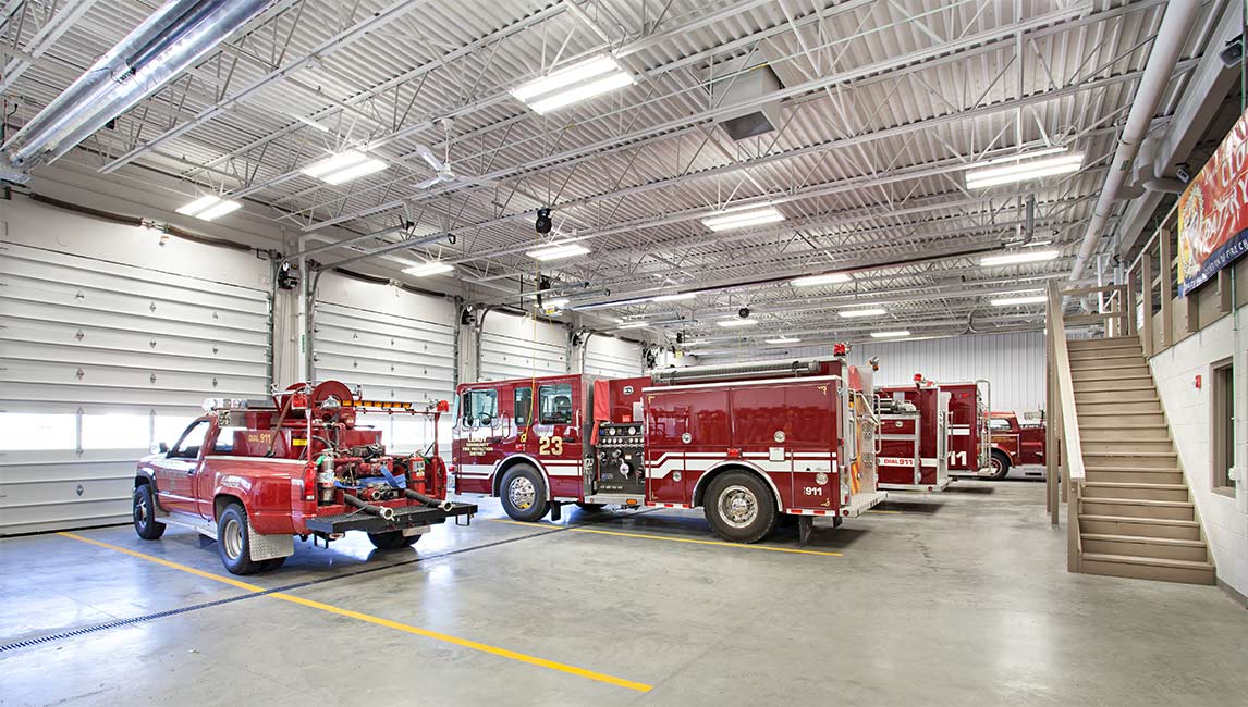 For years the emergency medical system (EMS) and volunteer fire department struggled with space that was crowded and too small to fit its equipment. Custom trucks had to be built and others modified so they would fit through the existing doors. The trustees of the LeRoy Community Fire Protection District sought to replace the cramped and outdated facility with a new modern facility that would meet current needs and provide adequate space for the growing community.