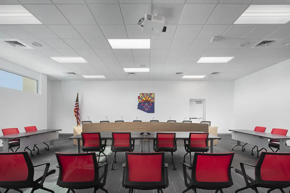 The Administration Building is located in southwest Tucson within the Drexel Heights neighborhood. Funded by a voter-approved bond issue, this 10,362 SF facility was situated to be a more central part of the Fire District. The building replaces an older community center, with a new masonry and metal panel structure that houses offices, a training classroom and a new meeting room for the Board of Directors. The training room is also used for community outreach.