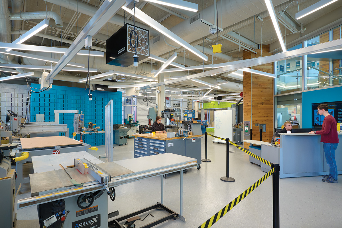 Completed in summer 2017, the facility provides state-of-the-art, stimulating learning and doing spaces for students to collaborate on short-term and multi-year “create-design-build-display” activities.