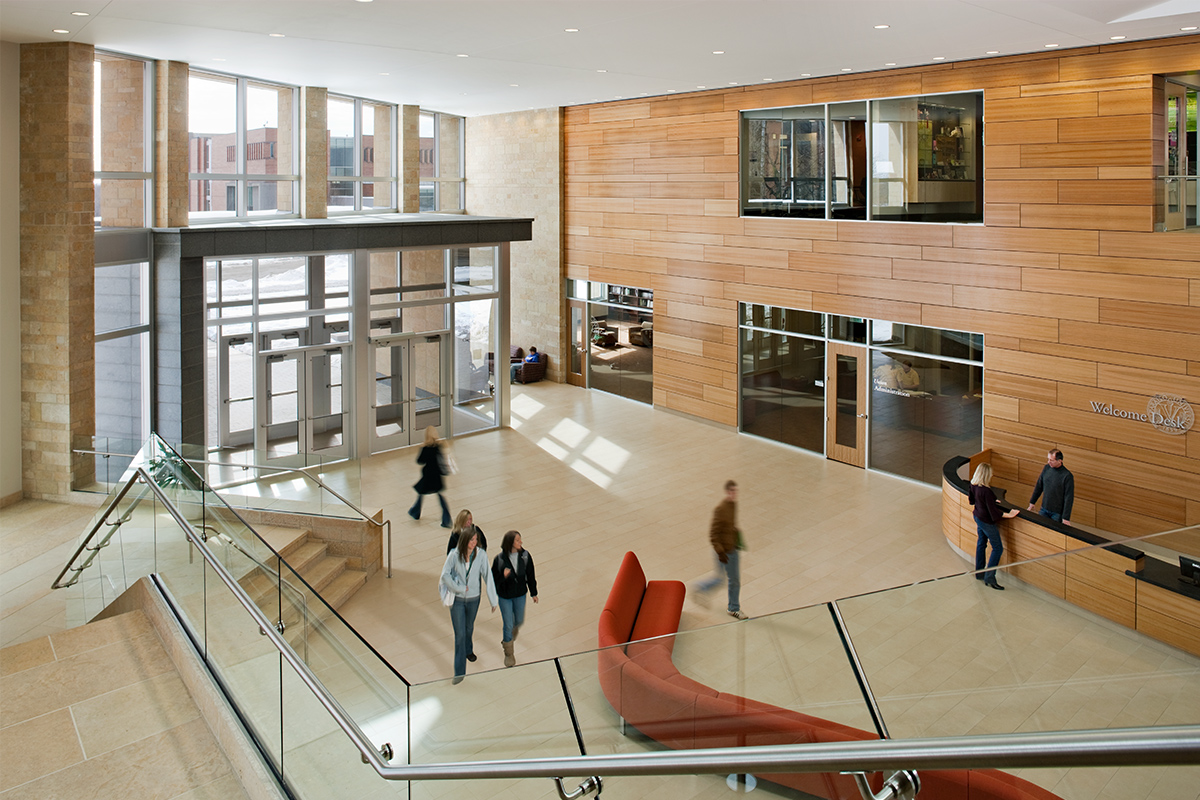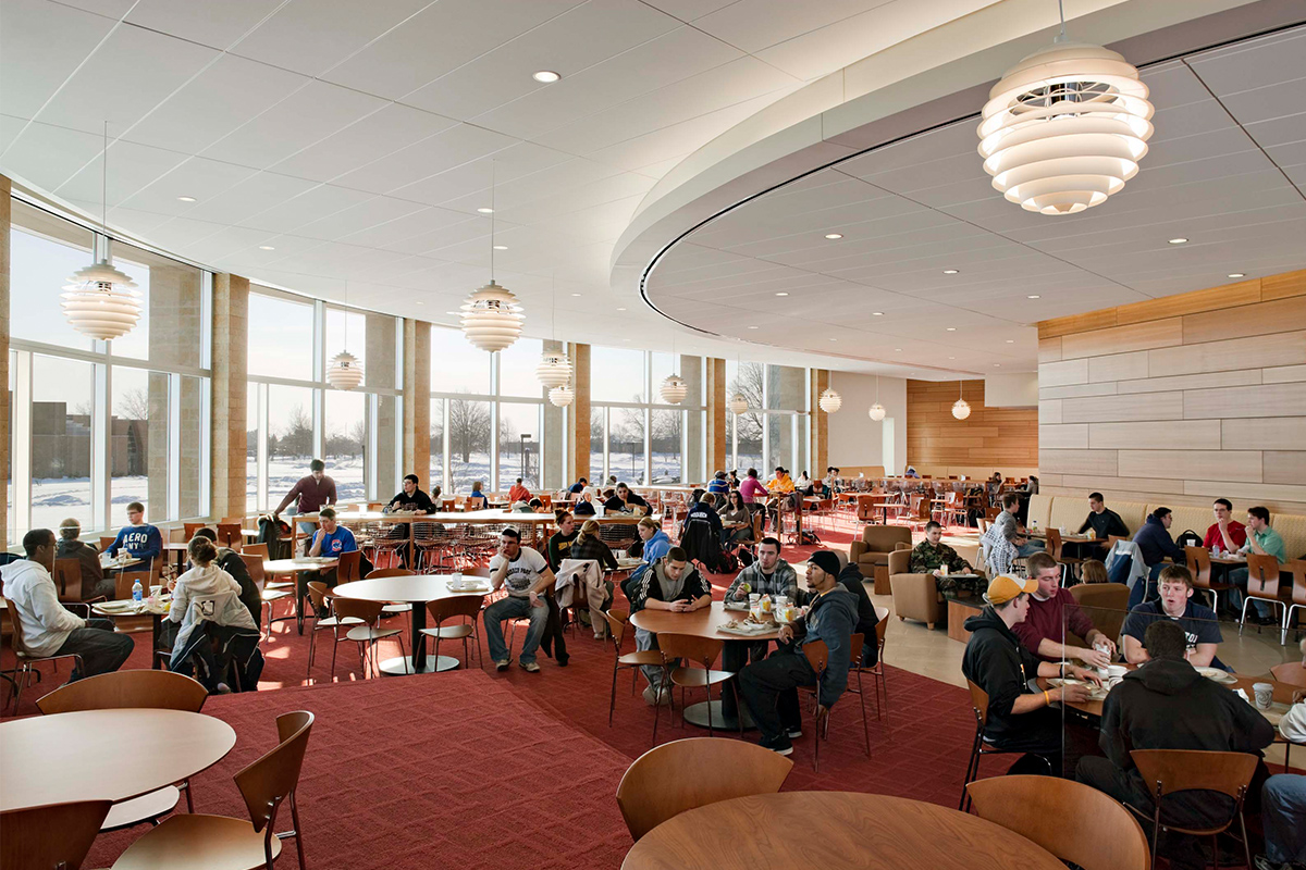 The goal for Valparaiso University was to create a new “social heart” of campus, in an activity-filled environment for students, their families, alumni, and guests. The Harre Union was designed to fulfill that goal now, and into the future. The award-winning design defers to, and focuses views on the religious foundation of the University, the Chapel of the Resurrection.