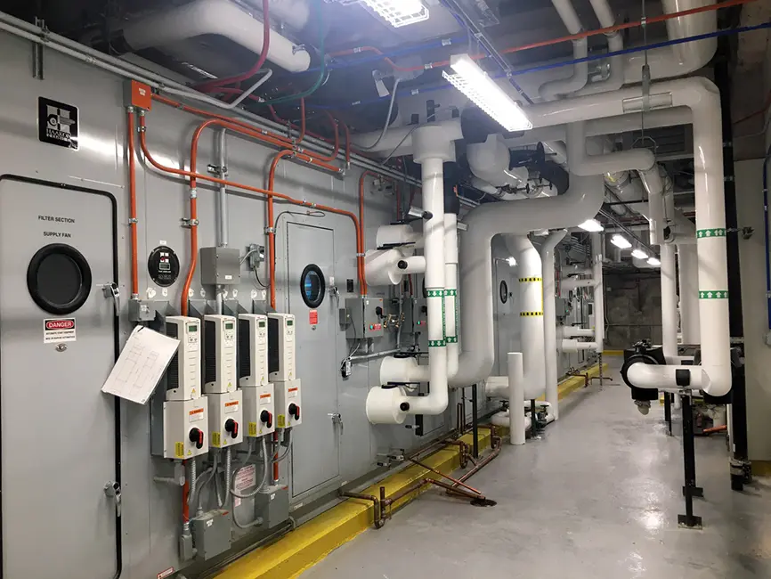 The second bid package involved relocation of the following services: blood marrow, flow cytology, molecular, and hematology lab areas and the addition of Pre-PCR processing DNA/RNA extraction and Post PCR & sequencing rooms, a cell culture room, and immunogenetics HLA and analysis work areas. In addition, a new 8th floor penthouse was constructed to provide space for the replacement of two air handling units currently housed in an existing 7th floor penthouse. The new penthouse also contains dedicated rooms for an uninterrupted power supply system and reverse osmosis water system to serve the expanded core lab.
