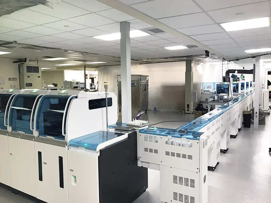 With increased automation of the University of Iowa Health Care pathology core lab and the addition of HLA, an expansion to the core laboratory was needed along with the creation of a new mechanical penthouse to support the lab. In order to keep the lab functional 24/7, this project was completed in two bid packages.