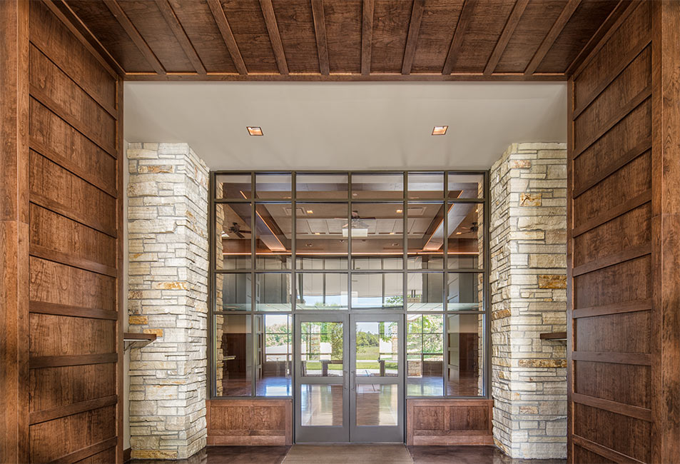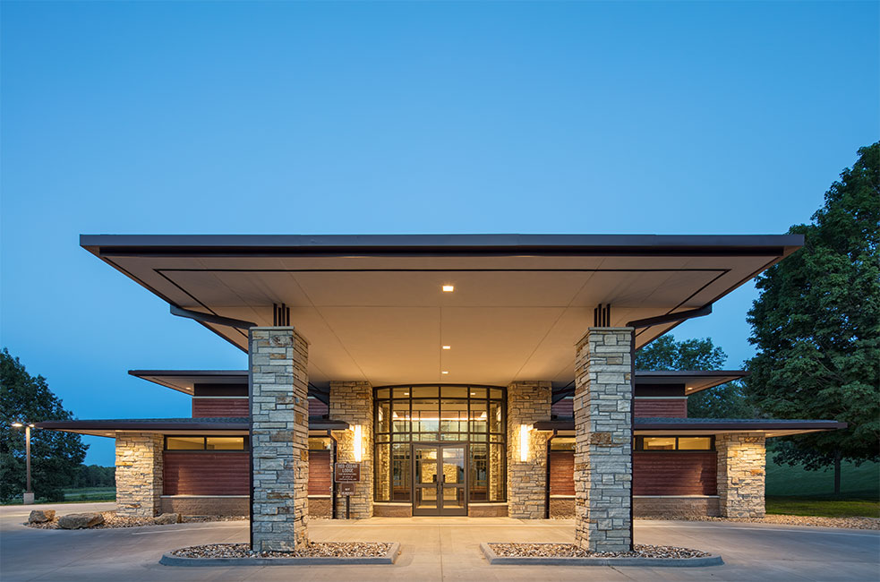 The Linn County Conservation Board wished to make upgrades to a 40-year-old lodge in Squaw Creek Park in Marion, Iowa, that is popular for weddings, graduation parties, reunions and other community events. Red Cedar Lodge, originally constructed in 1976, did not meet Americans with Disabilities Act (ADA) requirements, had no air conditioning, and the fireplace was in the center of the room, dividing the space. Linn County Conservation wanted to make improvements that would not only increase the functionality of the space but also make it more appealing to its users.