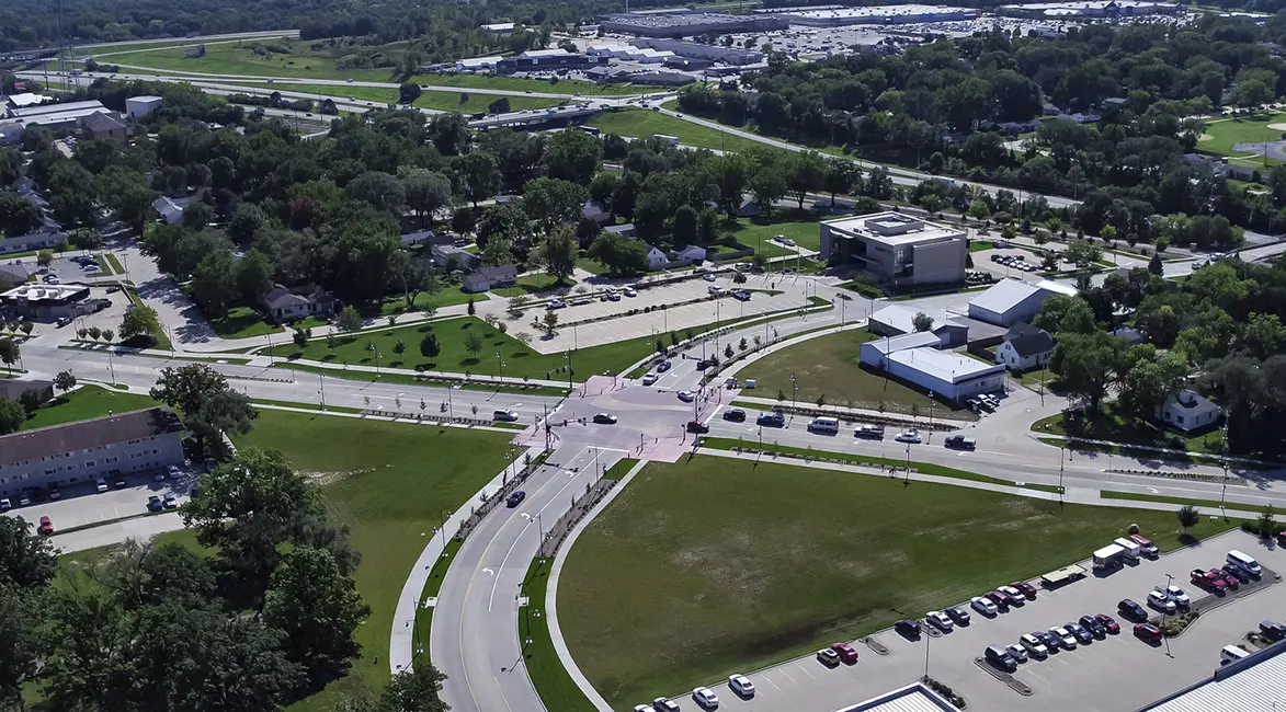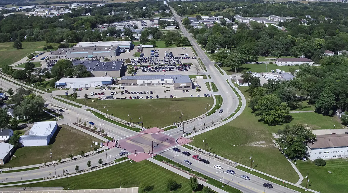 Shive-Hattery conducted a traffic study to determine what was needed now and what would be needed in the future, ensuring that the city didn’t overbuild for its near-term needs. Conceptual drawings that included a town plaza adjacent to City Hall helped facilitate the roadway planning.