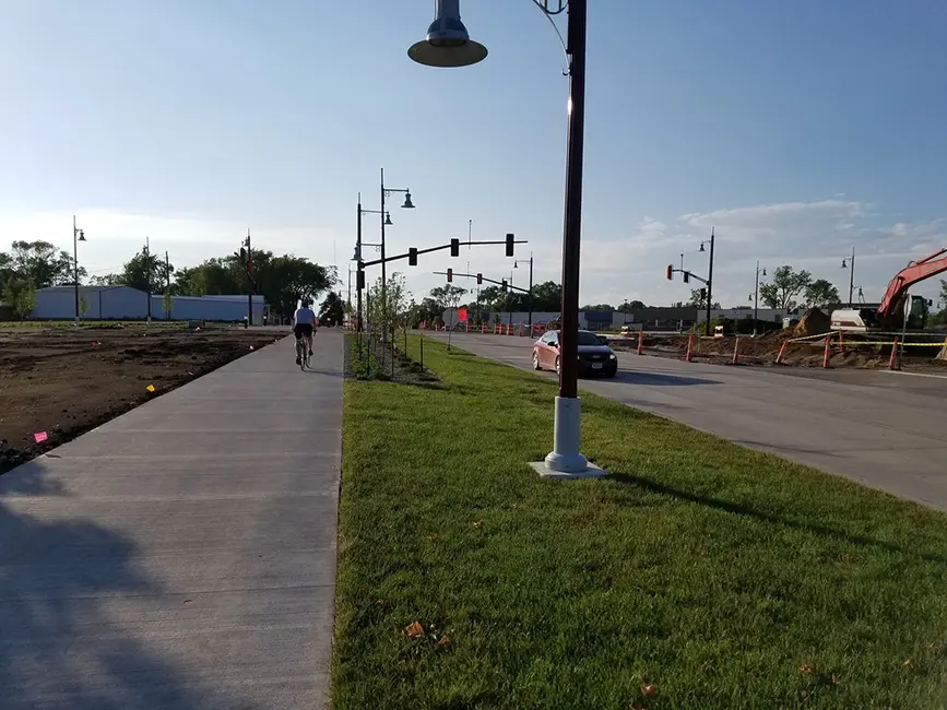 The intersection reconstruction completes the Center Point Road corridor improvements between Blairs Ferry and Tower Terrace roads. Plantings and pavement treatments created a unique intersection that helps define the Hiawatha Town Center. It’s also helping to spur interest in development in the vicinity of the intersection. The many users of the Cedar Valley Nature Trail now have a much more manageable way to cross Center Point Road.
