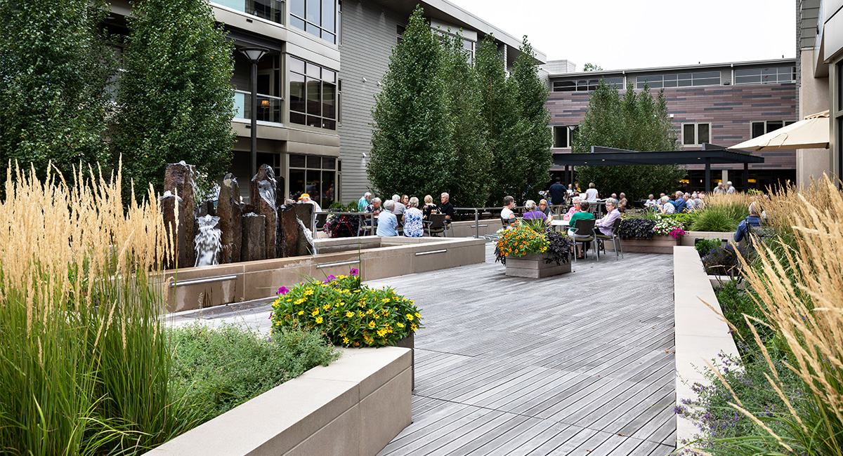 Amenities like courtyards and garden spaces can distinguish a facility when attracting new residents or patients and strengthen a sense of community with interactive gathering spaces.