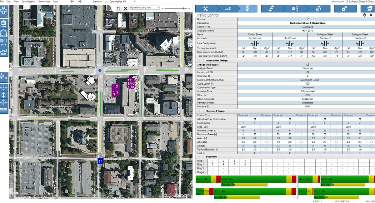 Traffic engineering studies address changing traffic volumes and patterns that can potentially cause new issues or accentuate existing deficiencies. These studies can include detailed traffic counts, traffic modeling with programs such as SYNCHRO, SimTraffic, VISSIM, VISTRO and Highway Capacity Software, capacity and queuing analysis, access management reviews, traffic calming components, ITS integration and pedestrian/bicyclist/transit user accommodations.