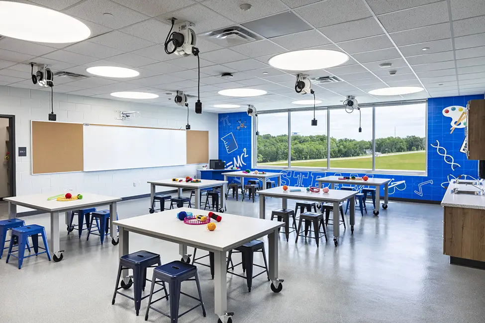 The design incorporated scalable core spaces to accommodate future growth, while specialized areas like the library, band, and music rooms were developed to enrich the educational experience. The inclusion of storm shelters ensures student safety, and the construction of essential infrastructure supports the school’s operations. The project remained within budget, demonstrating effective resource management.