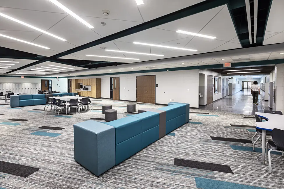 Faced with rapid enrollment growth, the Clear Creek Amana Community School District needed a new facility to accommodate its expanding student population. The district required a school that could initially serve 600 students with the flexibility to expand to 750, ensuring that core facilities like the commons, gymnasium, kitchen, and media center were designed to support the larger capacity from the outset.